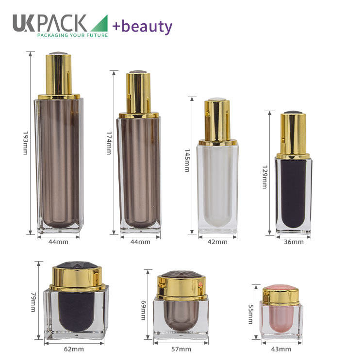 Imagem grande: Alto - Conjunto de cuidados com a pele acrílica final 15 - 30 - 50 - 100 - 120ml Garrafa de loção quadrada 15 - 30 - 50g Jar |